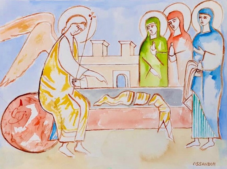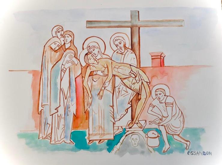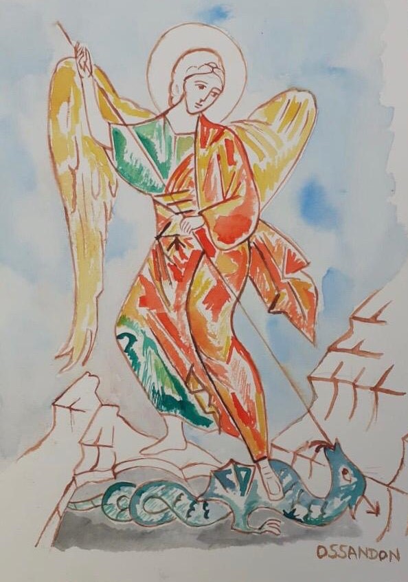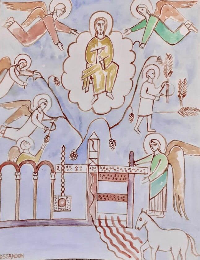 Las acuarelas están inspiradas en antiguas pinturas románicas y góticas y en el arte paleocristiano de las catacumbas; que eran lugares bajo la tierra donde celebraban la eucaristía los primeros cristianos perseguidos por el imperio romano.
