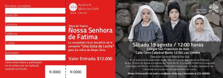| Colegio San Francisco de Asís | Las Condes | Ago-2017 | Nossa Senhora de Fátima | Familias y Niños. Fundación Ayuda Iglesia que Sufre | 130 personas |